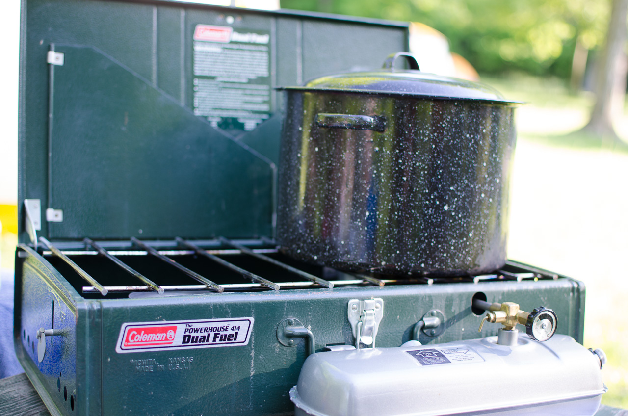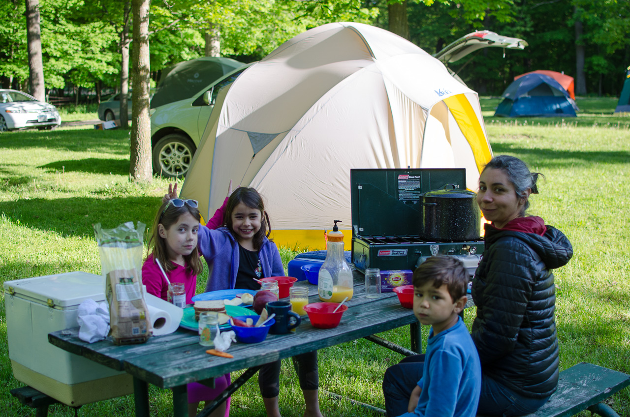 Nous découvrons le brûleur à Camp Fuel et faisons connaissance avec les voisins qui nous prennent en pitié en voyant notre difficulté à faire bouillir l'eau de nos pâtes. Finalement, quand on sait s'en servir, ça chauffe bien ce truc.