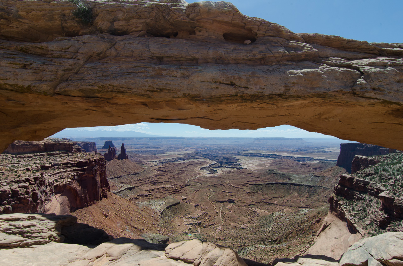Petite ballade jusqu'à Mesa Arch, une fenêtre ouverte sur le Canyon. Arches n'a pas le monopoles des arches, en fait on trouve un petit peu de tout à Canyonlands, c'est le parc tout en un.