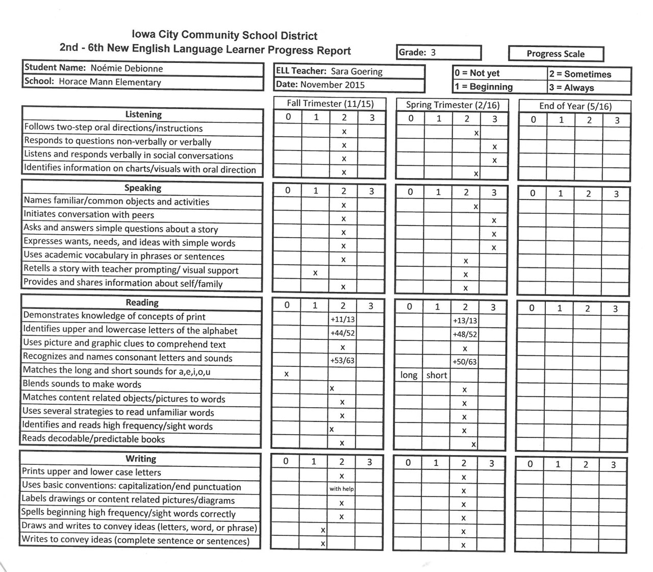 Les cours d'anglais (English Language Learners) sont eux aussi soumis à évaluation.