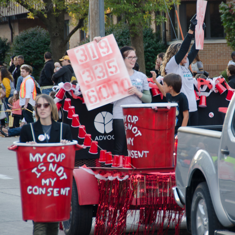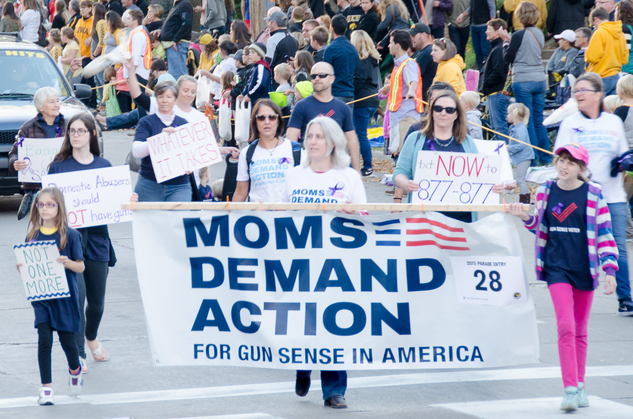 On y croise tout un tas d'associations, ici contre les armes à feu et les aggressions sexuelles.