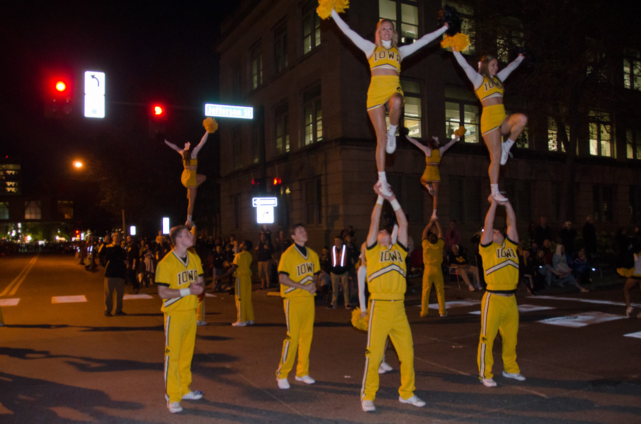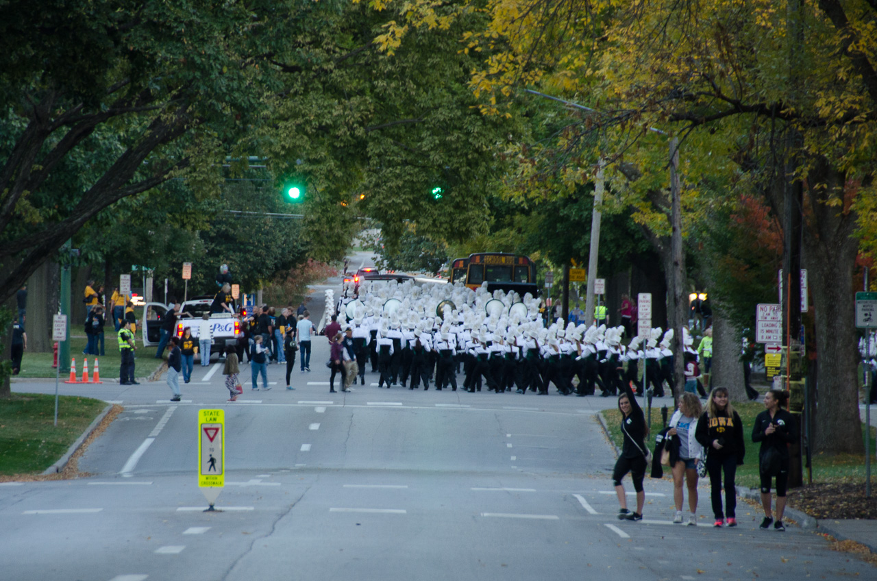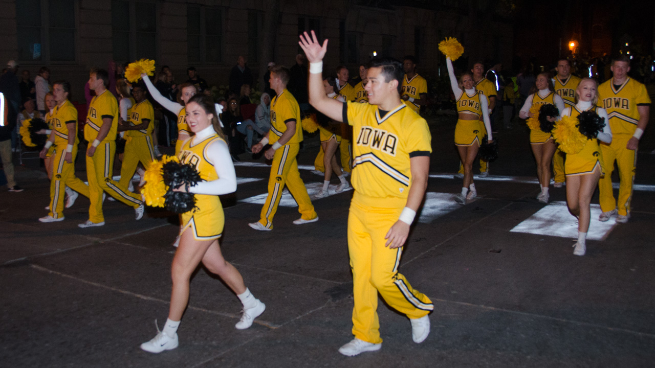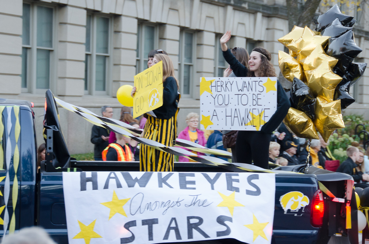 Les fans de l'équipe de football recrutent. Herky est la mascotte de l'équipe.