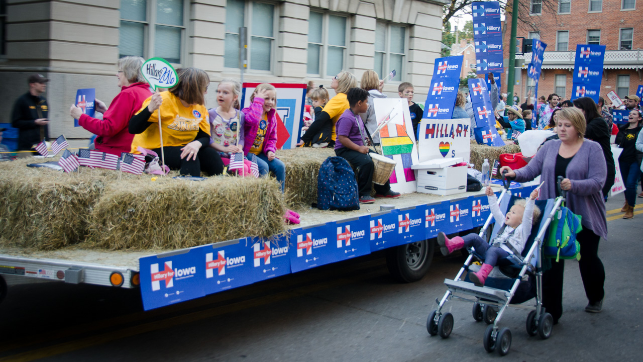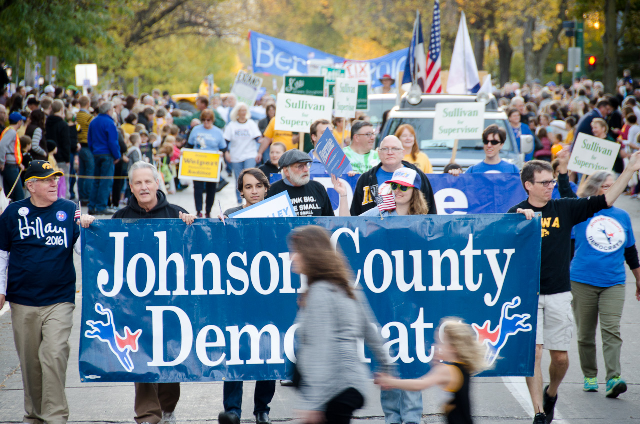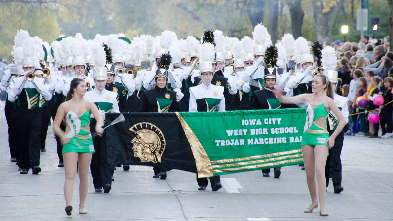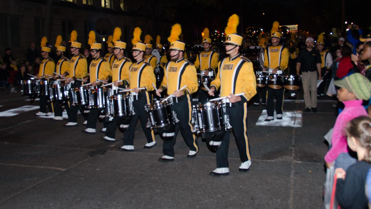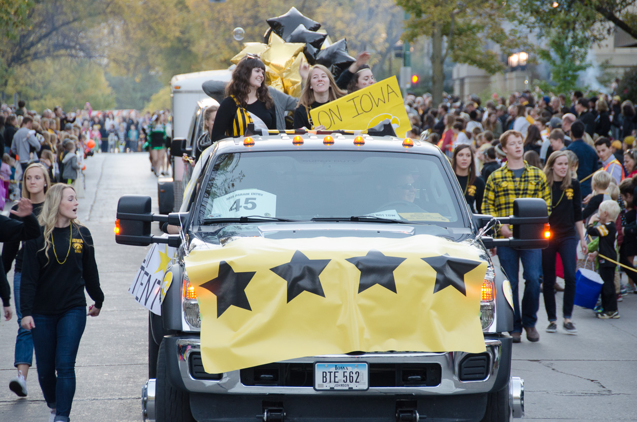 Les fans de l'équipe de football recrutent. Herky est la mascotte de l'équipe.