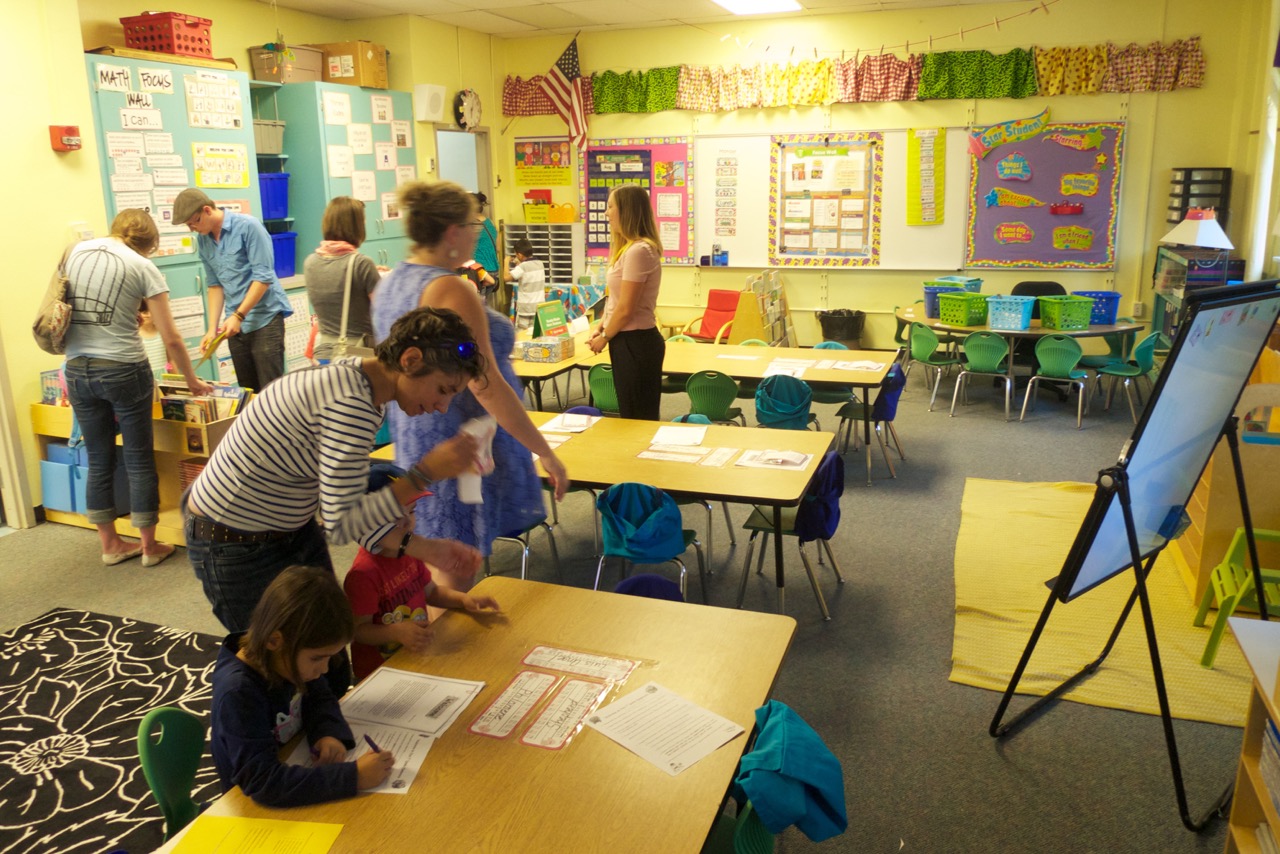 Les bureaux sont regroupés par petit groupe de cinq dans la classe. Ms Perry s'occupe du Grade 3 mais certaines activités sont communes avec le Grade 4 de Mr Green.