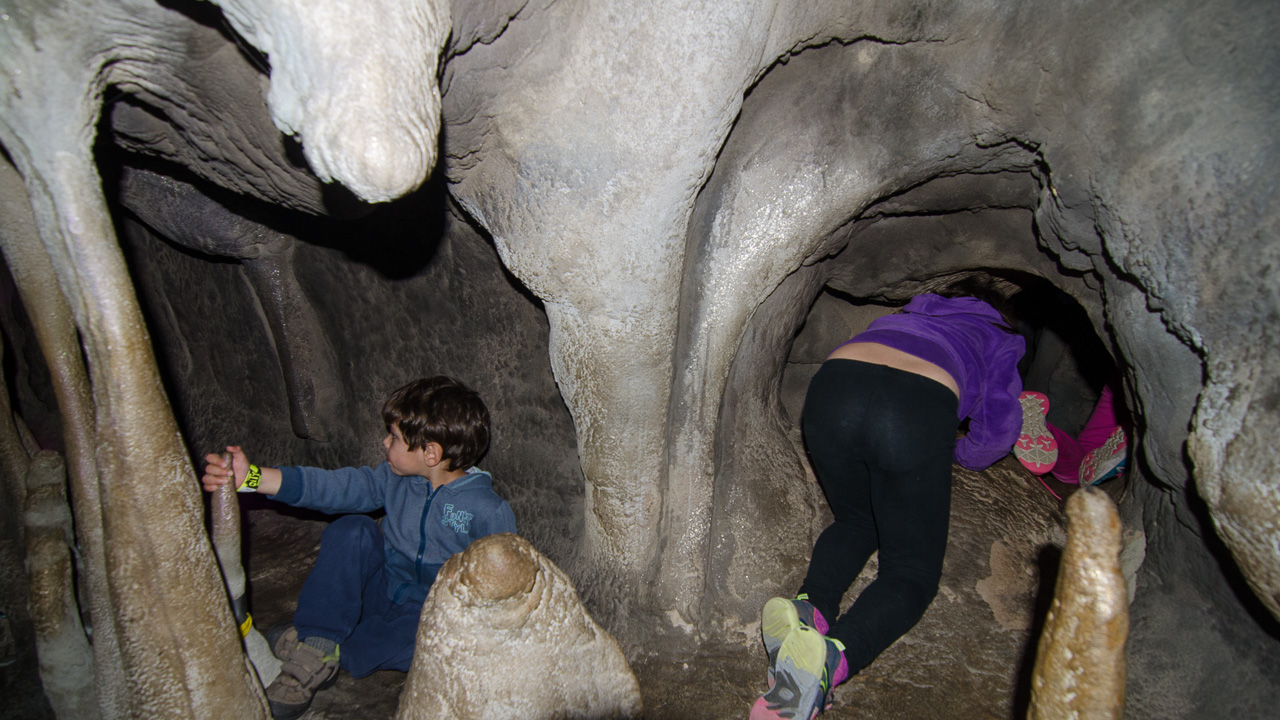 No maps. Entrance to the 10 story slide is through the caves.