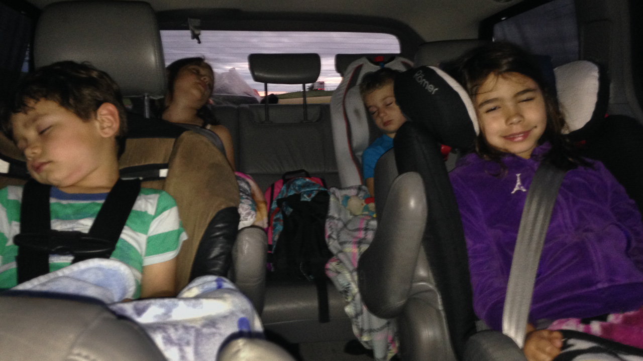 Décollage à 4h du matin de façon à ce que la route paraisse moins longue aux enfants.