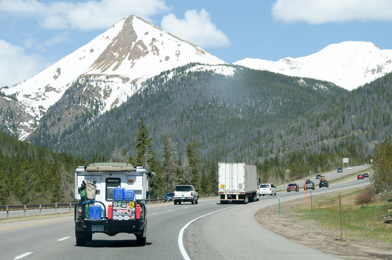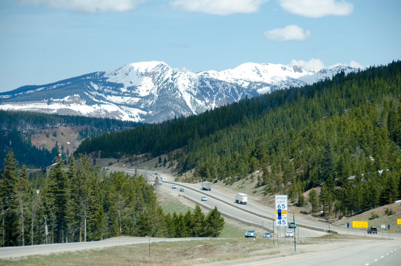 Après la longue traversée du Nebraska -"boring" on était prévenu- et ses exploitations bovines gigantesques, nous apercevons les montagnes du Colorado qui se dessinent au loin.