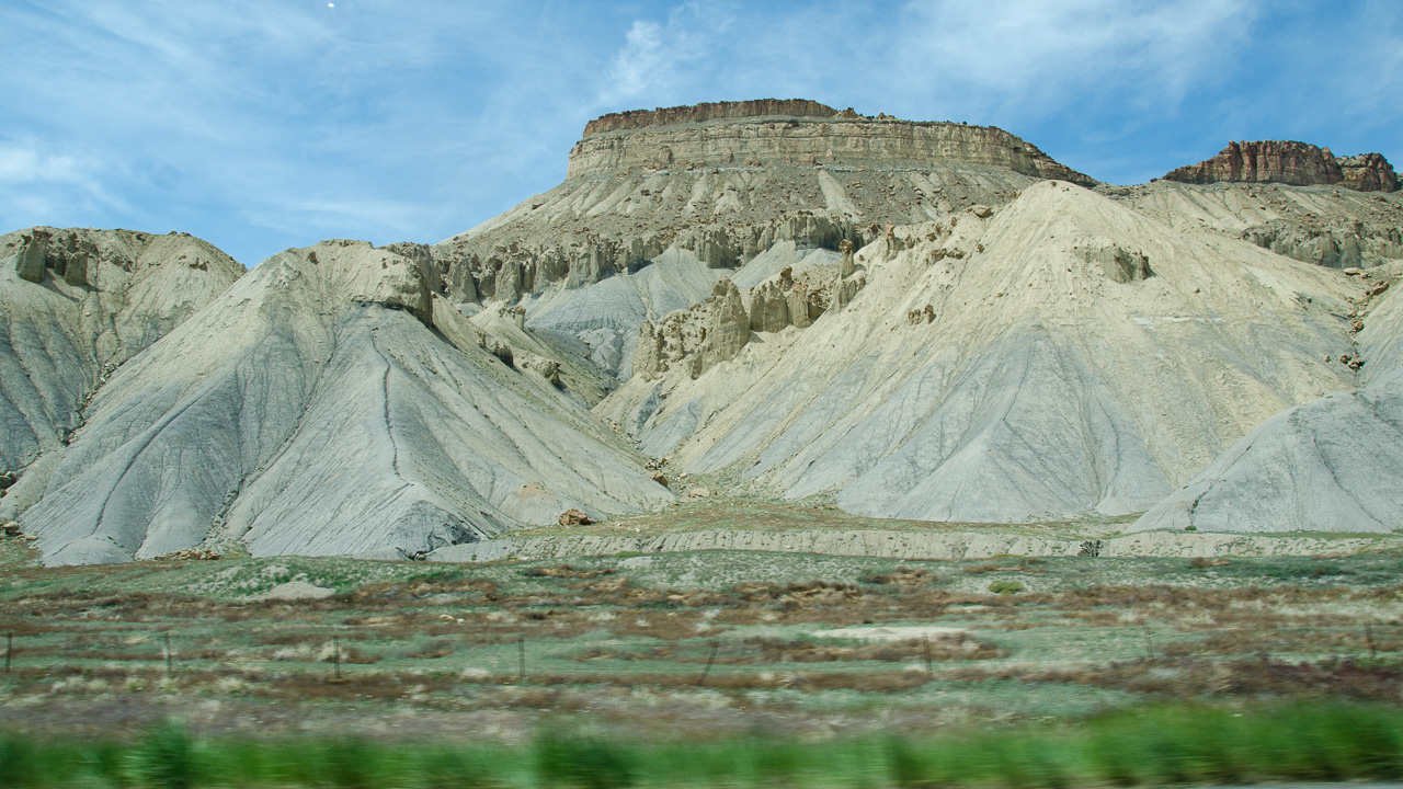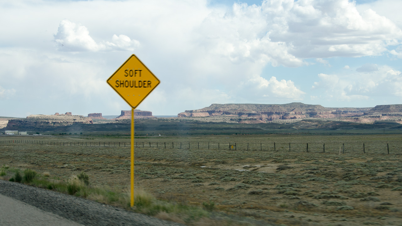 Le relief est plus raboté, on sent que l'érosion a fait son travail que les Canyons ne sont plus loins. "Soft shoulder", il ne s'agit pas ici de l'épaule de Maud.