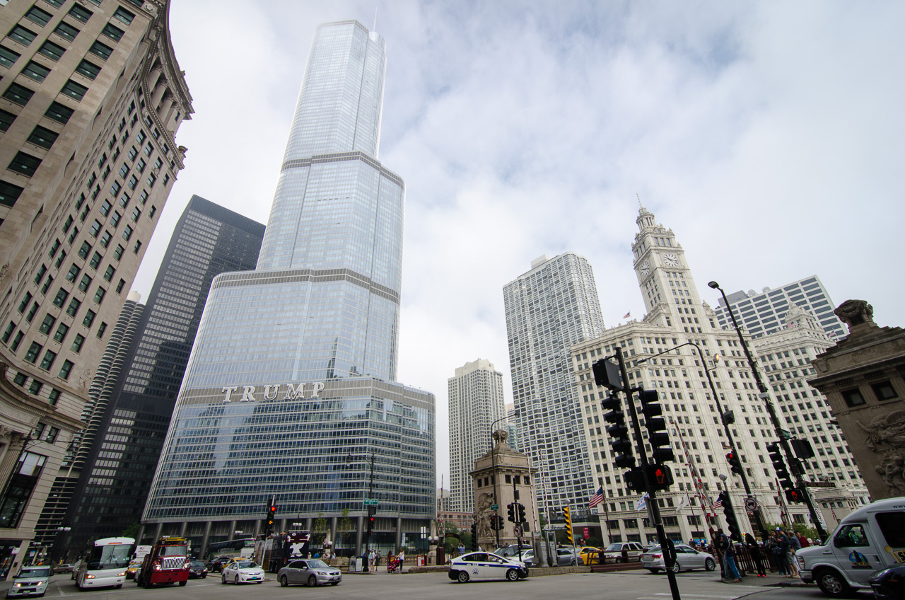 Un premier aperçu de la ville et sa Trump Tower, du nom du candidat à la présidentielle Donald Trump.