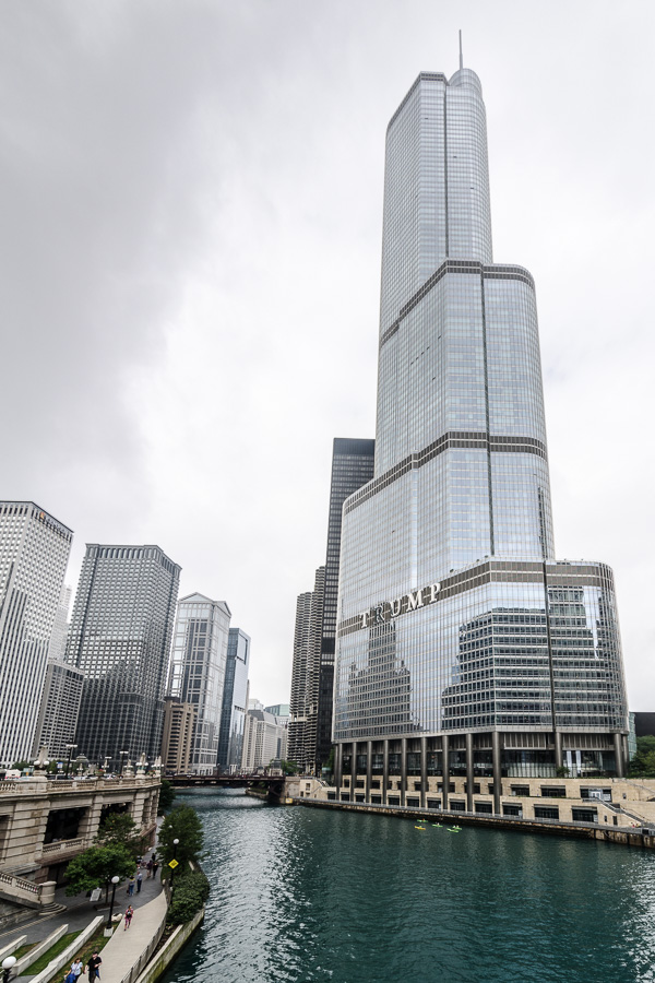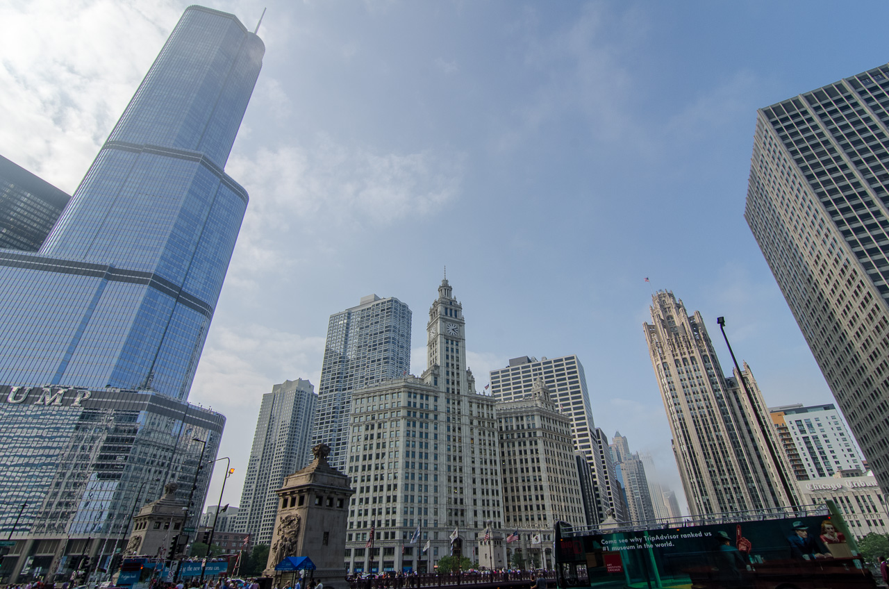 Sur cette photo on aperçoit ce curieux bâtiment dans un style néogothique (à droite). C'est la Tribune Tower ! Comme quoi la presse écrite a encore la santé dans ce pays. Peut-être parce qu'ils ont réussi à prendre le virage du numérique ? Ou parce que Paperboy est une des rares professions qui peut être exercée par des mineurs ?