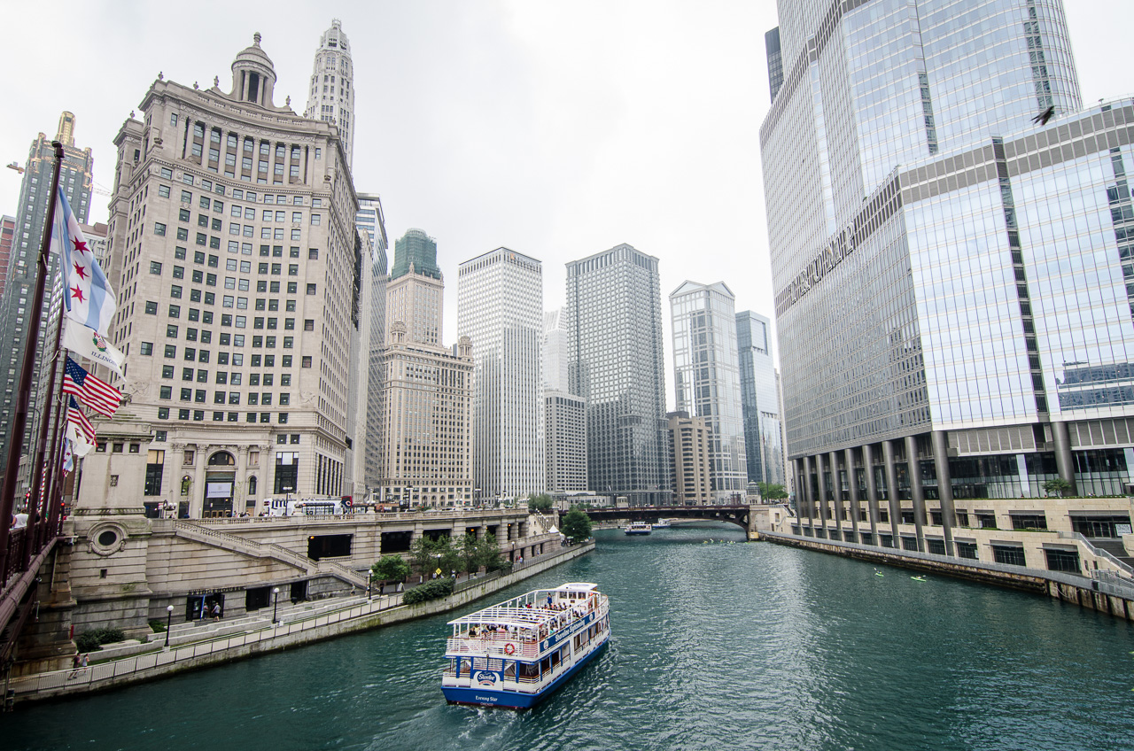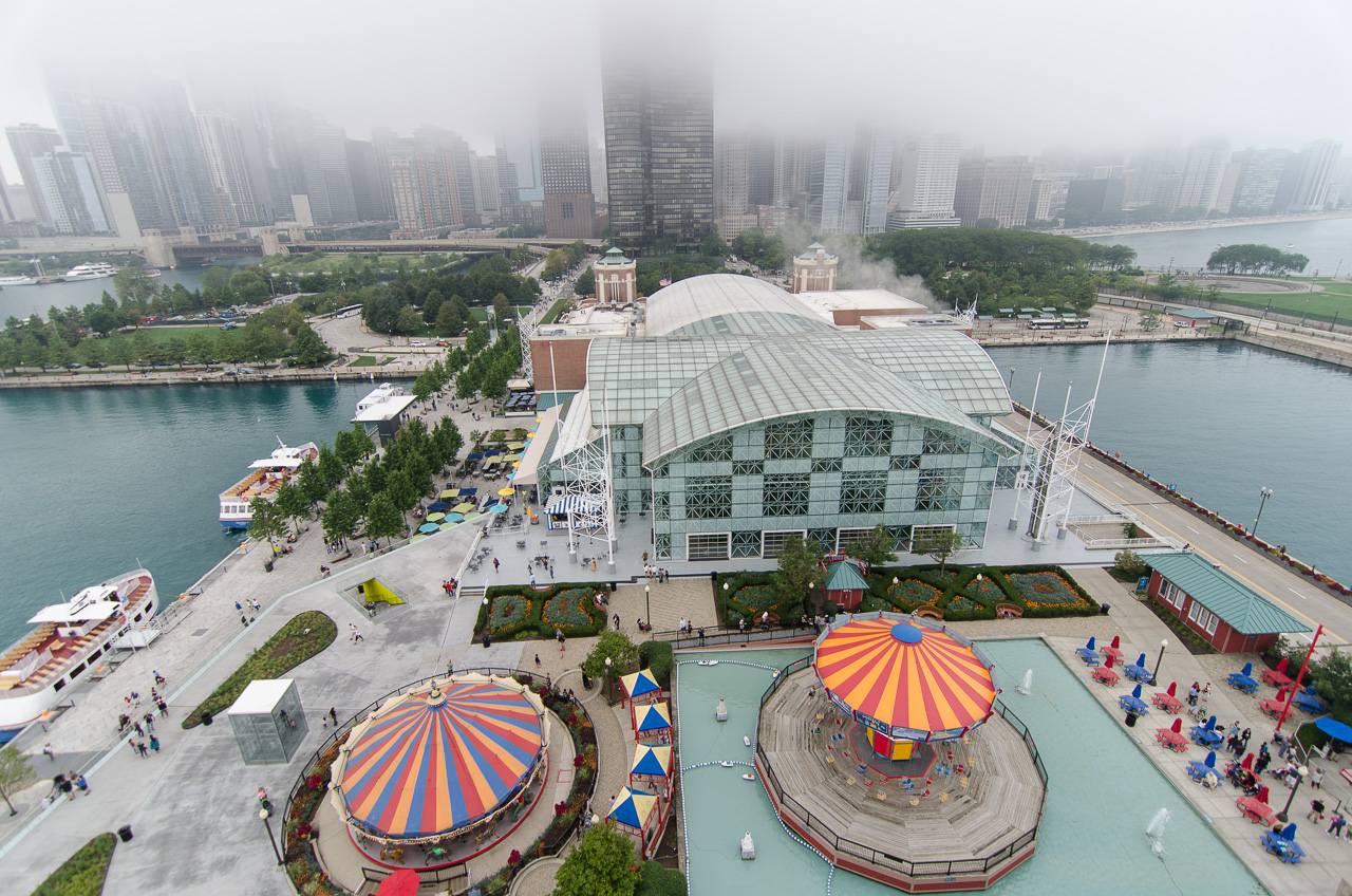 Une légère brume couvre la ville, nous reportons donc l'ascension d'un des gratte-ciel à une autre fois. Direction donc Navy Pier en bateau taxi.