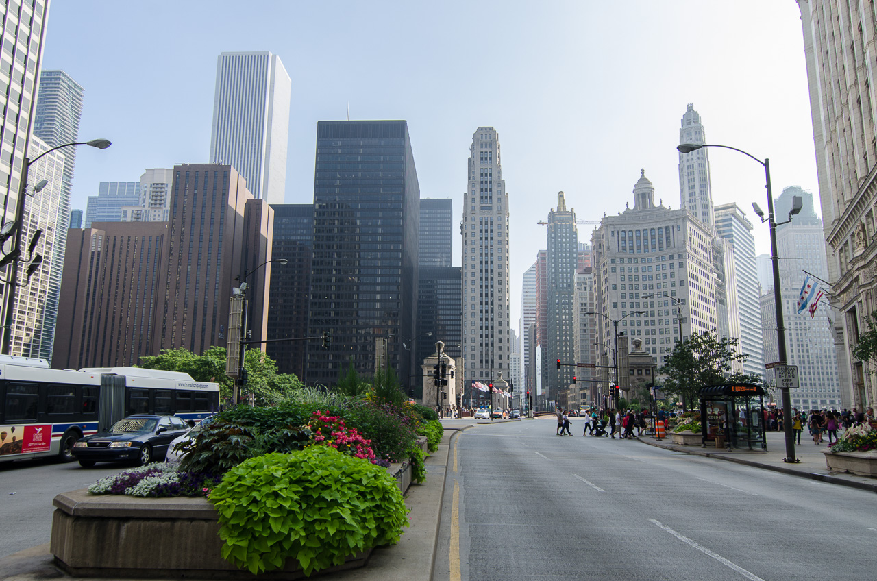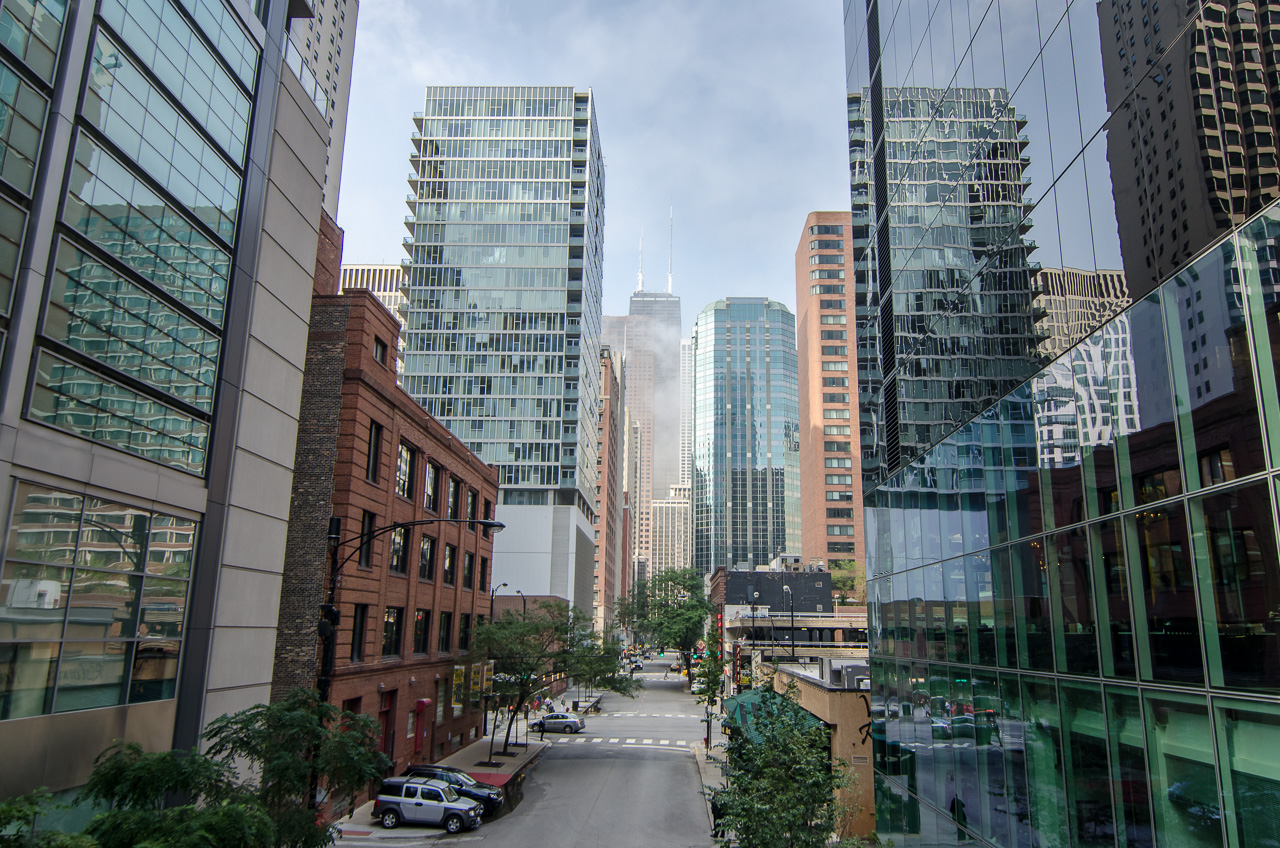 Une photo prise depuis Michigan Avenue, l'une des principales artères de la ville. J'aime assez les reflets dans les vitres...
