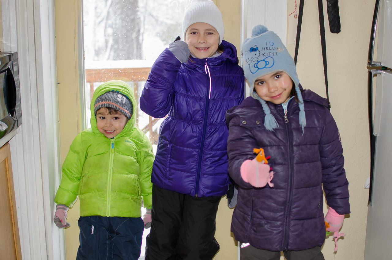 Check list. Sous-vêtements chauds, enfilés. Polaire, zippée. Salopette, fermée. Moufles et bonnets, mis. Bottes, enfilées.