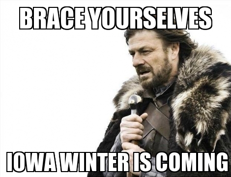 En français dans le texte, "Accrochez-vous, l'hiver iowan arrive".